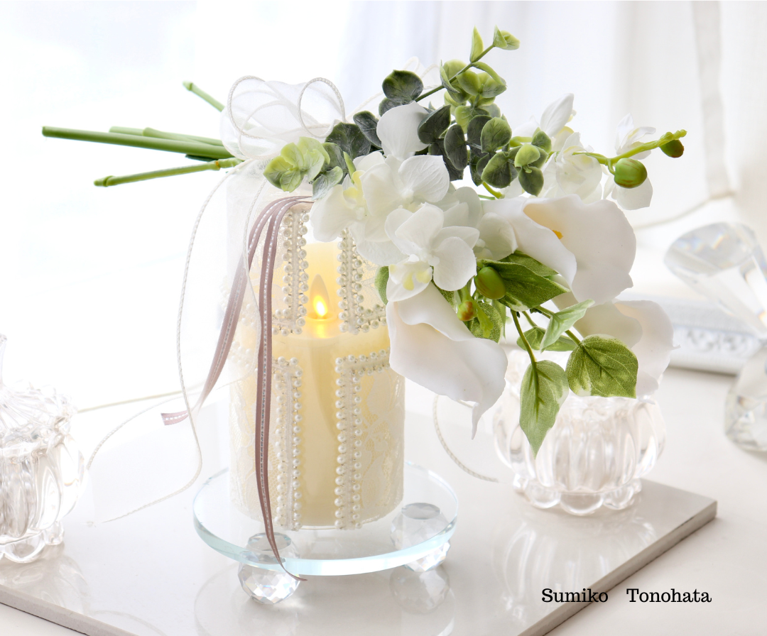 お花とリボンの調和を楽しんで見ていただけたらと思います。